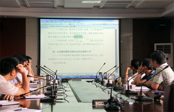 2013年7月29日,中共江西省水利水电建设有限公司委员会召开了党的群众蹊径教育实践运动专题事情会(扩大)会,聚会讨论了公司教育实践运动计划,以及对详细实验事情举行安排。公司党委委员、高层治理职员以及教育实践运动向导小组办公室成员加入了聚会。