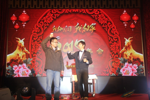 年会在喜庆的气氛下拉开序幕,公司董事长王元旦揭晓了热情洋溢的新年贺词,并代表公司董事会向全体员工及眷属,向体贴公司生长的社会各界朋侪致以新春的祝福;厥2014年,王董事长指出,在公司董事会的准确向导下,全体员工上下团结一心,攻坚克难,立志有为,顽强拼搏,扎实事情,各项事情取得了令人鼓舞的效果,公司朝着质量好、品牌优、信誉高、市场广的集团型企业偏向迈进。展望2015年,王董事长体现,公司将继续围绕“一个系统,五大平台”建设为事情重心,一直刷新立异,开拓进取,以越发强烈的责任继续、越发务实的事情作风、越发饱满的事情热情,团结一心,同心同德,在实现公司梦的征程上阔步前行!王董事长热情洋溢的讲话,获得了现场的阵阵掌声。