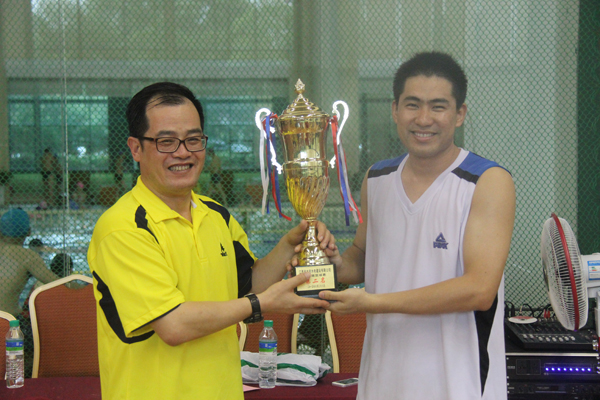 董事长王元旦(奖杯右)为冠军揭晓奖杯