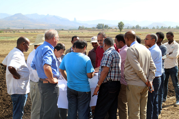 2016年3月20日,埃塞俄比亚联邦水利能源部部长Motuma Mekesa左右及副部长Kebede Gerba左右向导水利能源部尼罗河浇灌项目协调办、阿姆哈拉州土地治理局、阿姆哈拉州尼罗河浇灌项目协调办等项目各参建单位认真人到我公司承建的埃塞俄比亚Ribb一期浇灌项目视察。