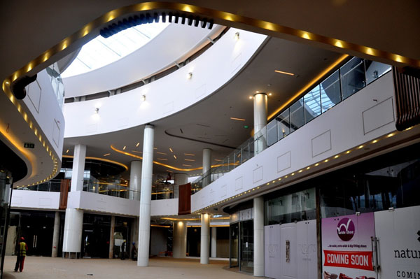 自阛阓主体结构实现全线封顶以来,项目部的事情重心转向商铺装修,全体员工在项目司理彭红军的向导下,严酷施工质量治理,清静文明施工,加班加点赶进度,争分夺秒抢工期,只用了短短10个多月时间,按要求保质保量完成了阛阓装修,获得了业主方的高度赞美。一座涵盖200多家商铺的现代化阛阓泛起在众人眼前。