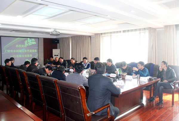 2月15日,上饶市水利局副局长江华平一行来公司就企业改制事情举行调研。公司董事长王元旦、总司理徐洪良、党委书记王延军、副总司理兼江西外洋公司执行董事张周平、副总司理曾朝文等一同加入了调研座谈。