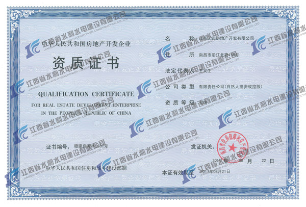 2014年8月22日,经南昌市住房包管和房产治理局审核批准,江西水建子公司江西元迪房地产开发有限公司房地产开发资质乐成获得延续。