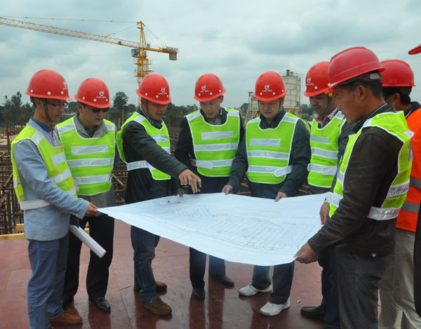 2014年8月8号,公司董事长王元旦、总会计师王义生,副总司理张周平、黄郑民一行抵达肯尼亚,最先了为期一周的巡视指导事情。刚下飞机,董事长王元旦一行便马一直蹄地赶往位于肯尼亚首都内罗毕的双河房地产项目一期、二期工地举行视察。