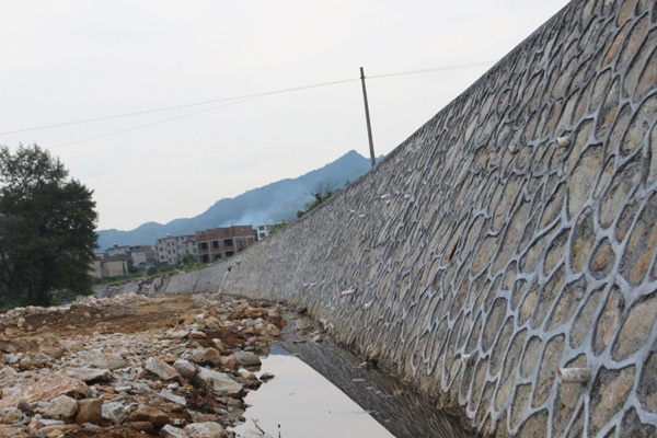 完成的防洪墙(浆砌石贴面埋石砼防洪墙)