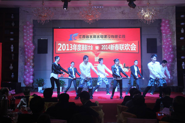 联欢会文艺演出在舞蹈《中国梦,我的梦》中拉开帷幕,歌曲联唱、朗诵、小品、情景剧、激情热舞等文艺节目先后上演,精彩的演出引来了全场掌声雷动,充满了欢声笑语。新的一年开启新的希望,新的征程承载新的梦想,《水利人的一天》、《赞美水利、走向天下》等篇章抒发出江西水建子女迎着水利春天的脚步,肩并着肩,手牵着手,一起为公司和小我私家的优美明天起劲斗争的壮志与豪爽!