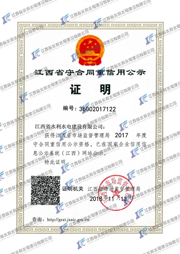克日,公司依附优异的口碑,再一次荣获守条约重信用企业公示资格证实。