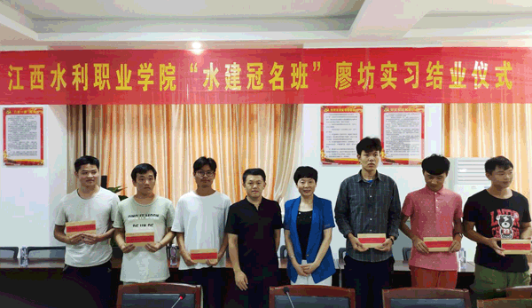 6月1日,由江西省水利职业学院,江西省水利水电建设有限公司冠名的“水建冠名班”在抚州廖坊灌区二期工程ppp项目举行了实习结业仪式。