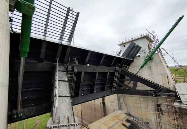 弧形闸门由3片门叶组成,重约70多吨。第一孔闸门的顺遂提升,鼓舞了项目全体职员的士气,坚定了各人众志成城高质量完成项目的刻意。