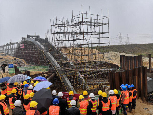 首日,学习团冒着寒风和细雨,先后旅行了西干渠三区地下顶管手艺现场、渡王家渡拱式渡槽手艺现场,一分干渠曾家渡碗式渡槽完工段。彭灿华、曾俊平、马小毛等项目治理职员,先后就手艺特点、质量清静控制要点、手艺计划比选、经济效益剖析等,向学习团一行作了先容。