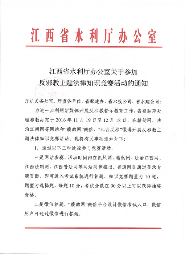 2016年开展反邪教知识竞赛的通知